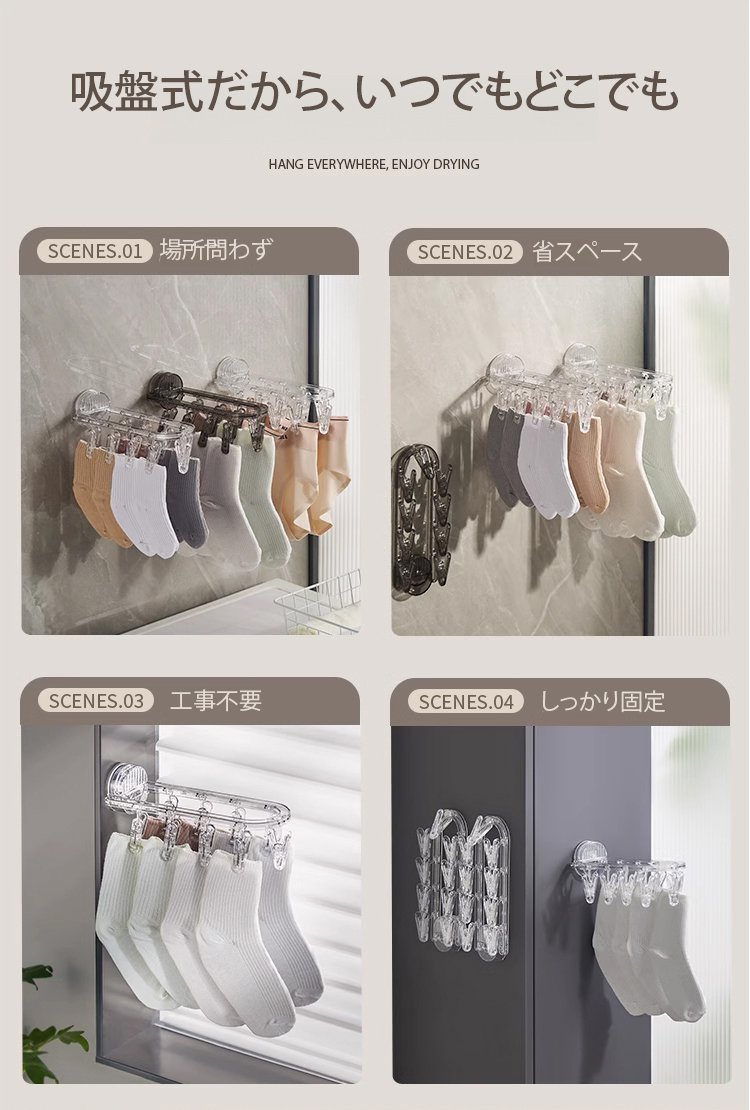 折りたたみ式壁掛けクリップハンガー
